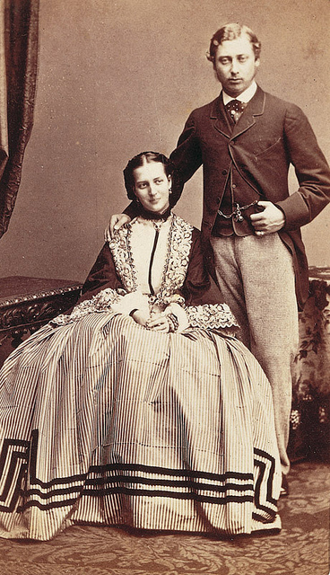In the early 1800's mustaches were prim, but as the century progressed, they grew wilder and bushier. Case in point the British royal family. Albert, the husband of Queen Victoria had no need for a mustache cup. Their son, Albert Edward, the Prince of Wales (and eventually King Edward VII) started out a bit bushier than his father, but eventually succumbed to the full monty. (how did they protect their beards from crumbs and spills?)